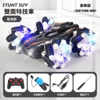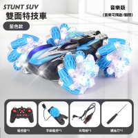 猫猫雙面遙控車-藍色【發光輪帶音樂】雙遙控