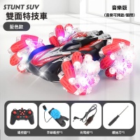 猫猫雙面遙控車-紅色【發光輪帶音樂】雙遙控